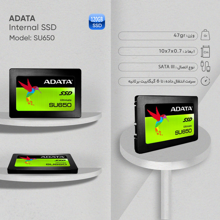 شرکت «ای دیتا» محصولی را با نام «SU650» روانهی بازار کرده که درواقع یک حافظهی SSD با ظرفیت 120 گیگابایت است. این اس اس دی از طریق رابط SATA 3 به کامپیوتر متصل میشود و میتواند با سرعت زیاد به انتقال اطلاعات بپردازد. حافظههای SSD برخلاف هارددیسکها برای انجام پردازشهای مربوط به ذخیرهسازی اطلاعات از هیچ قسمت حرکتی استفاده نمیکنند. این موضوع باعث مقاومت آنها دربرابر شوک میشود. حافظهی SSD ای دیتا مدل SU650 میتواند تا 1500G دربرابر شوک مقاوم باشد. فرم فاکتور این حافظه 2.5 اینچی است که بهراحتی میتوان آن را جایگزین هارددیسک لپتاپ کرد. میانگین عمر در حافظهی SU650 برابر با 2میلیون ساعت است که مقدار نرمالی برای SSDها بهشمار میرود. سرعت زیاد انتقال اطلاعات در SSDها باعث انجام سریع پردازشها در کامپیوتر میشود. همچنین به یاری مصرف انرژی کمترشان نسبت به هارددیسکها، میتوان شارژدهی بیشتری را از باتری لپتاپ انتظار داشت. ظرفیت 120گیگابایتی این حافظه گزینهی مناسبی است برای کاربرانی که اطلاعات زیادی برای آرشیوکردن در کامپیوتر خود ندارند یا اطلاعات خود را در هارددیسک اکسترنال ذخیره میکنند و از حافظهی کامپیوتر تنها برای ذخیرهسازی اطلاعات سیستمعامل و برنامههای کاربردی بهره میگیرند.