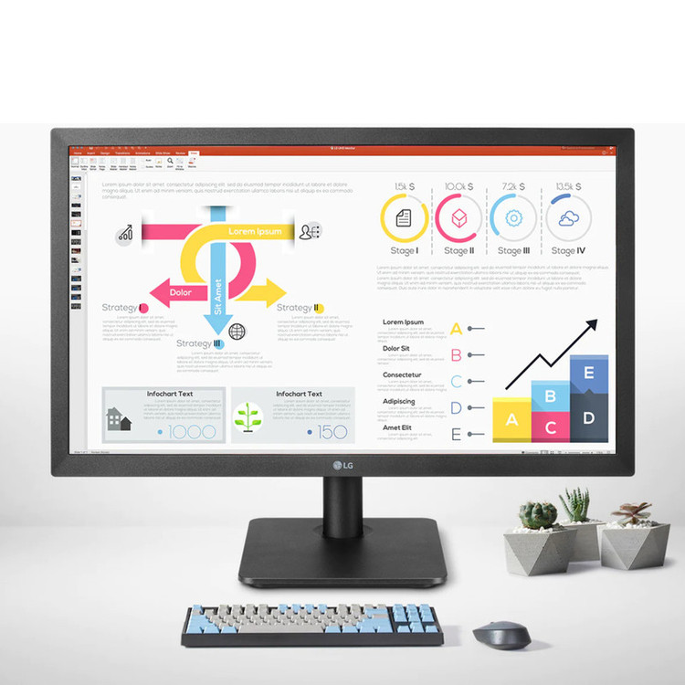 صفحه نمایش 21/5 اینچی مانیتور با پنل VA و محافظ صفحه نمایش Anti Glare ترکیب شده است که یک صفحه نمایش مطلوب با کارایی مناسب محسوب میشود. رزولوشن 1080×1920 و نسبت تصویر 16:9 مانیتور نیز توانایی 16/7 میلیون رنگ را دارد که با شدت روشنایی 250 کاندلا بر متر مربع برای استفاده در محیطهای روشن بسیار کارایی خواهد داشت. لازم به ذکر است نرخ به روز رسانی 75 هرتز بازیهای سبک را به خوبی اجرا میکند و با کنتراست 3000:1 جزئیات به خوبی نمایش داده میشوند. ابعاد 509/6x393/2x190 میلی متری مانیتور ال جی 22MP400-B فضای کمی از میز کاری شما را اشغال میکند و همراه با یک پایه مستحکم بر روی میز به صورت ثابت قرار میگیرد و قابلیت اتصال به دیوار را نیز دارد. طراحی این مانیتور به گونهای است که با تنظیم شیب صفحه میتوانید به بهترین موقعیت نمایش دست یابید؛ بنابراین این امکان را دارید که یک محیط کاری بهینه ایجاد کنید.